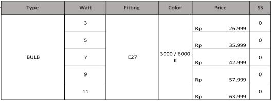 LED Lamp LED Bulb LED Tube T5 & T8 Nb : Harga dapat berubah sewaktu-waktu, harap hubungi kontak kami untuk lebih lanjut. Kontak Kami WhatsApp0851-0072-3929, 0857-3444-9955,0812-3067-852, 0856-5588-9394Telpon0343-639-086, 0851-0181-1200 Email Kami Yahoo : omega.putra@yahoo.co.id Gmail : dept.marketing@omegaputra.com Lokasi Bengkel Kami Jl. Bonsai RT05 RW06, Baujeng, Kec. Beji, Pasuruan, Jawa Timur 67154, Indonesia